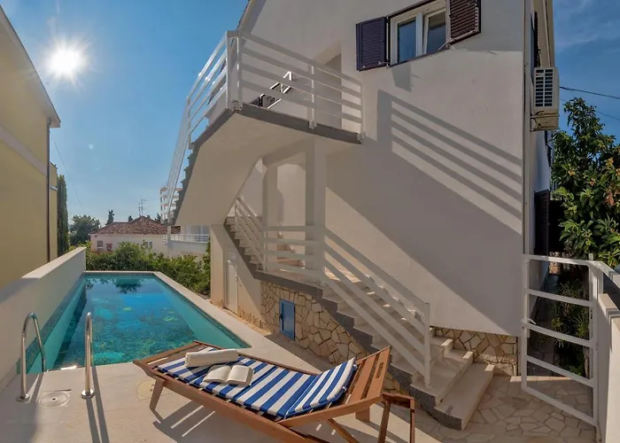 Situato a circa 5 minuti a piedi da Studenac Market, Appartamento Jacuzzi Traù, di 130 m², offre un accesso veloce a numerose attrazioni turistiche vicine. Dotato di una piscina all'aperto, quest'appartamento si trova a due passi da Copacabana Beach Okrug Gornji.
